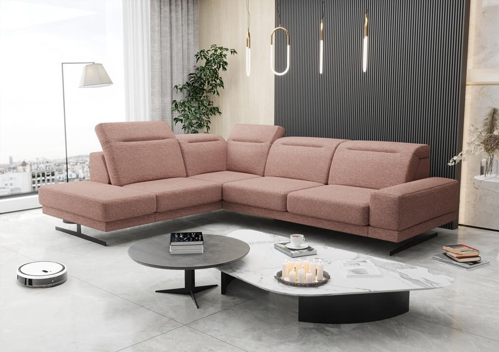 Rohová sedací souprava FIORE 265x220 cm - růžová, levá