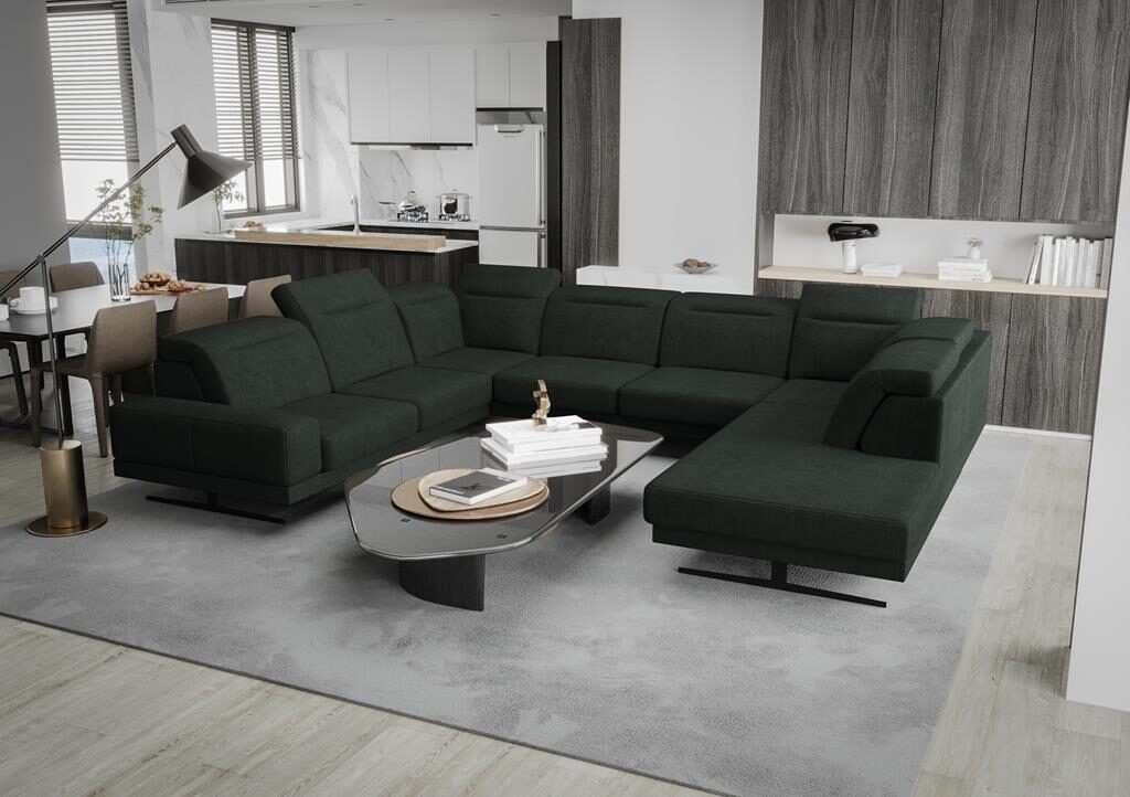 Rohová sedací souprava FIORE MAX I 220x350x265 cm - tmavě zelená, levá
