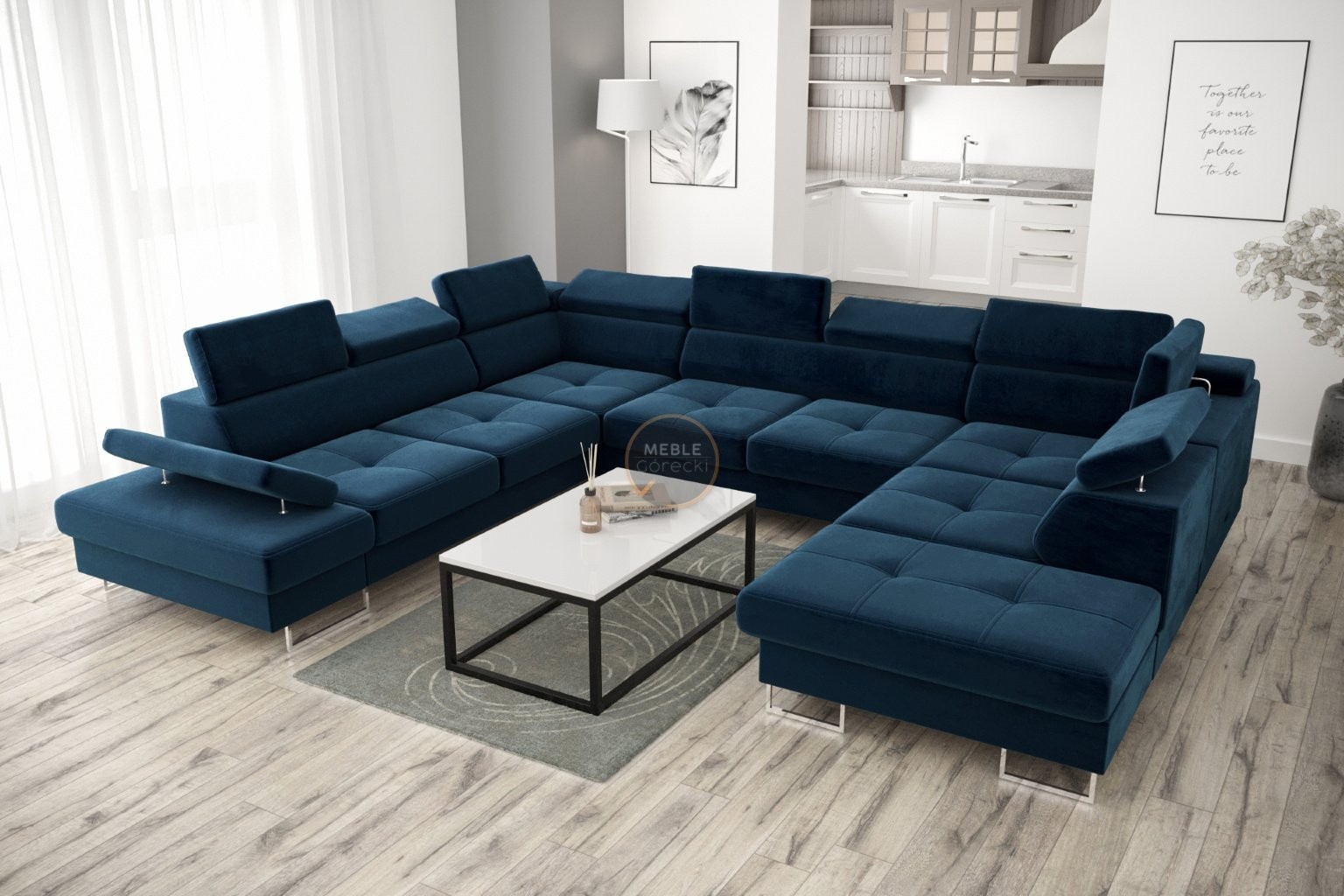 Rohová sedací souprava GALAXY MAX I s funkcí spaní 280x350x225 - modrá, levá