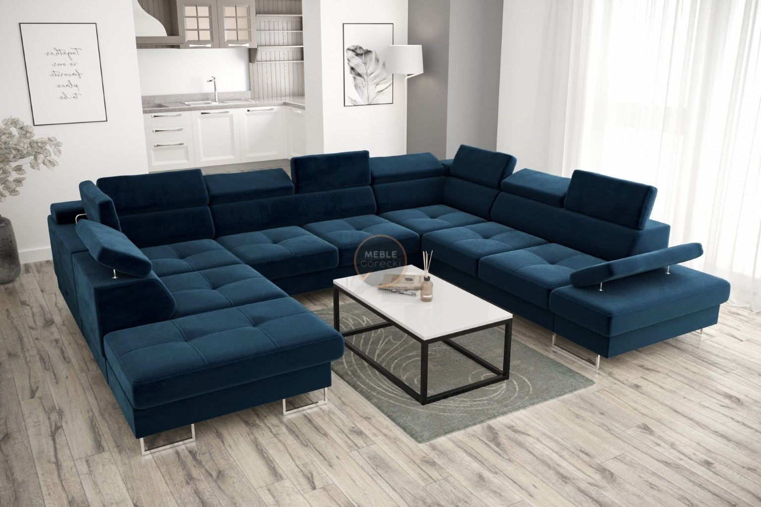 Rohová sedací souprava GALAXY MAX I s funkcí spaní 280x350x225 - modrá, pravá