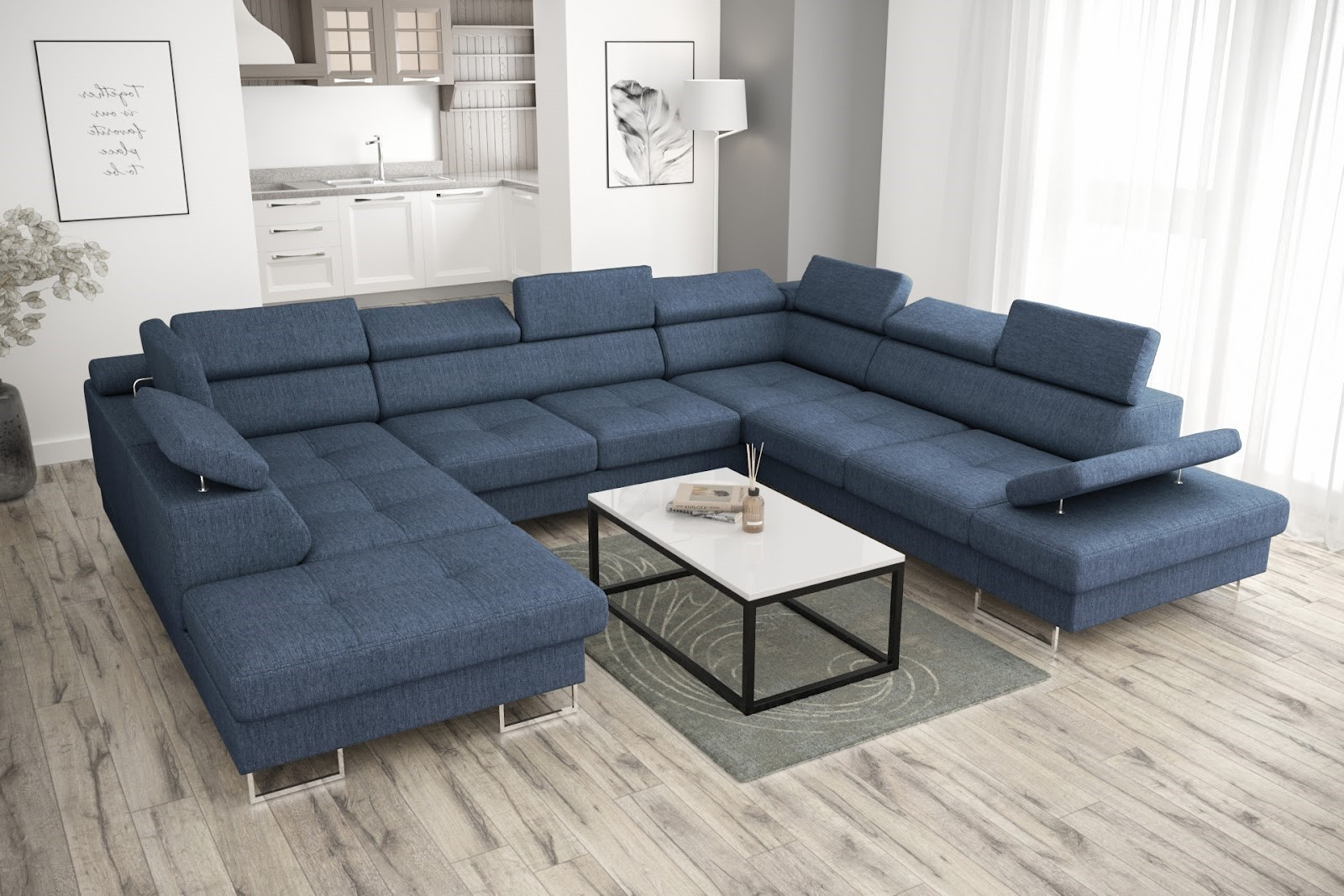Rohová sedací souprava GALAXY MAX I s funkcí spaní 280x350x225 - modrá, pravá