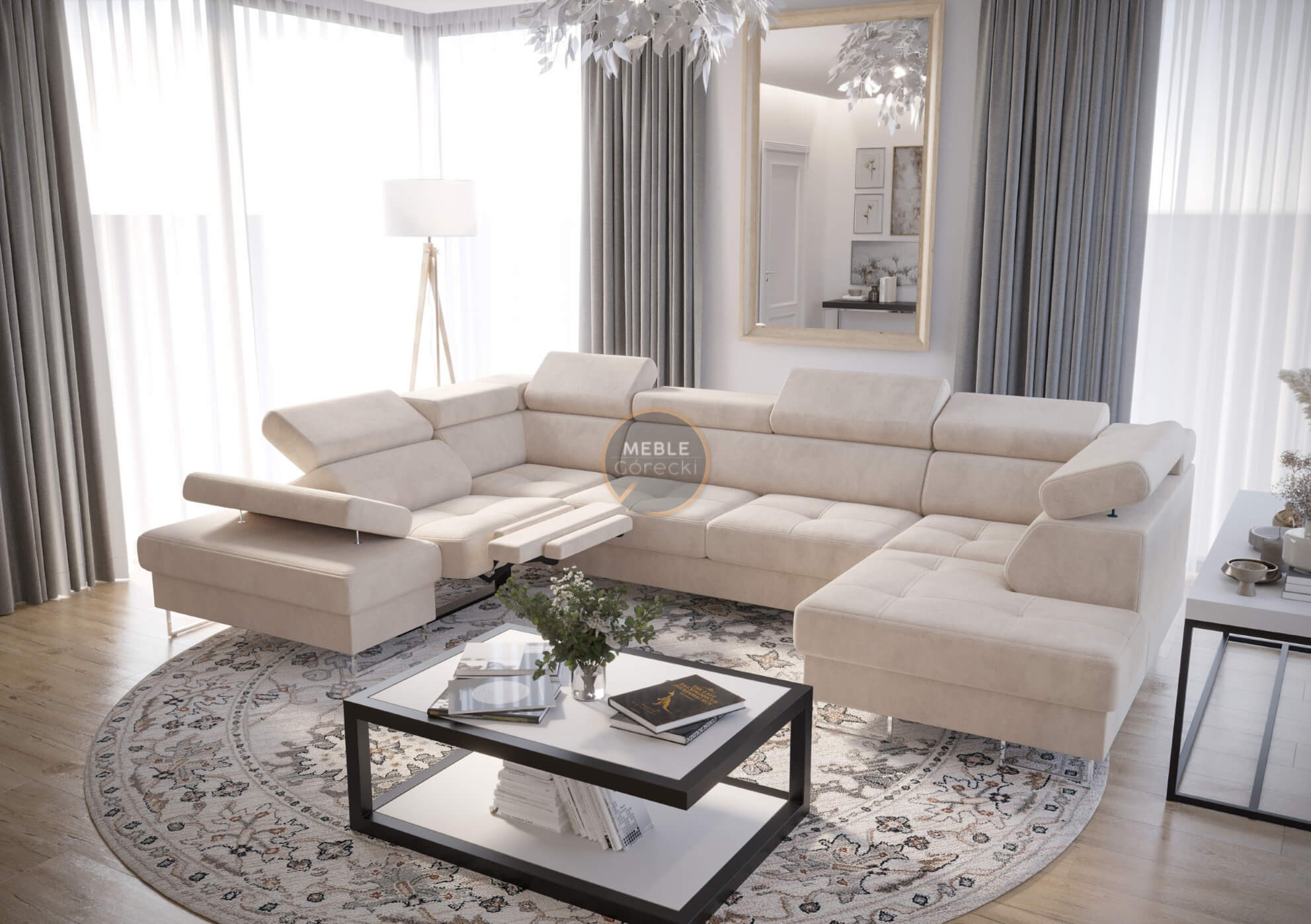 Rohová sedací souprava GALAXY MAX II , relax s funkcí spaní 215x350x170 - béžová, pravá