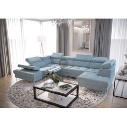 Rohová sedací souprava GALAXY MAX II , relax s funkcí spaní 215x350x170 - modrá, levá