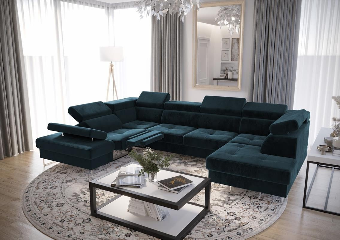 Rohová sedací souprava GALAXY MAX II , relax s funkcí spaní 215x350x170 - modrá, levá