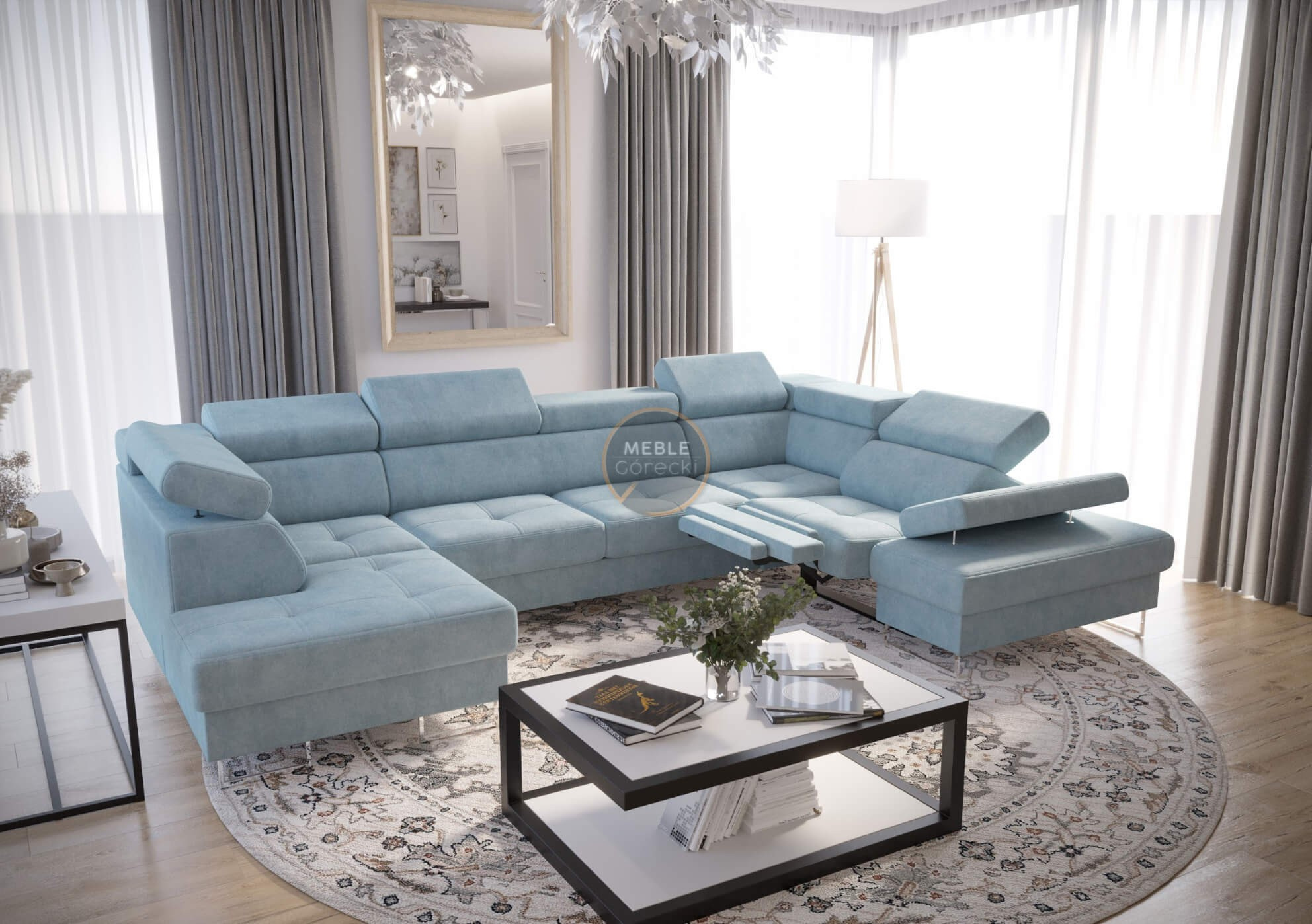 Rohová sedací souprava GALAXY MAX II , relax s funkcí spaní 215x350x170 - modrá, pravá