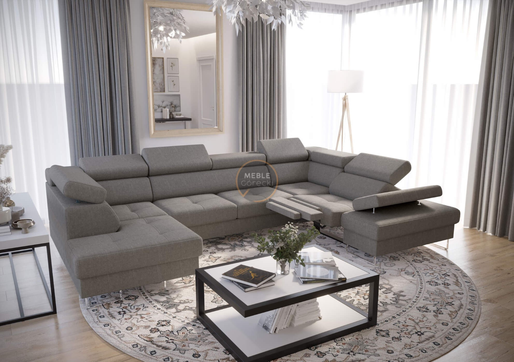 Rohová sedací souprava GALAXY MAX II , relax s funkcí spaní 215x350x170 - šedá , pravá