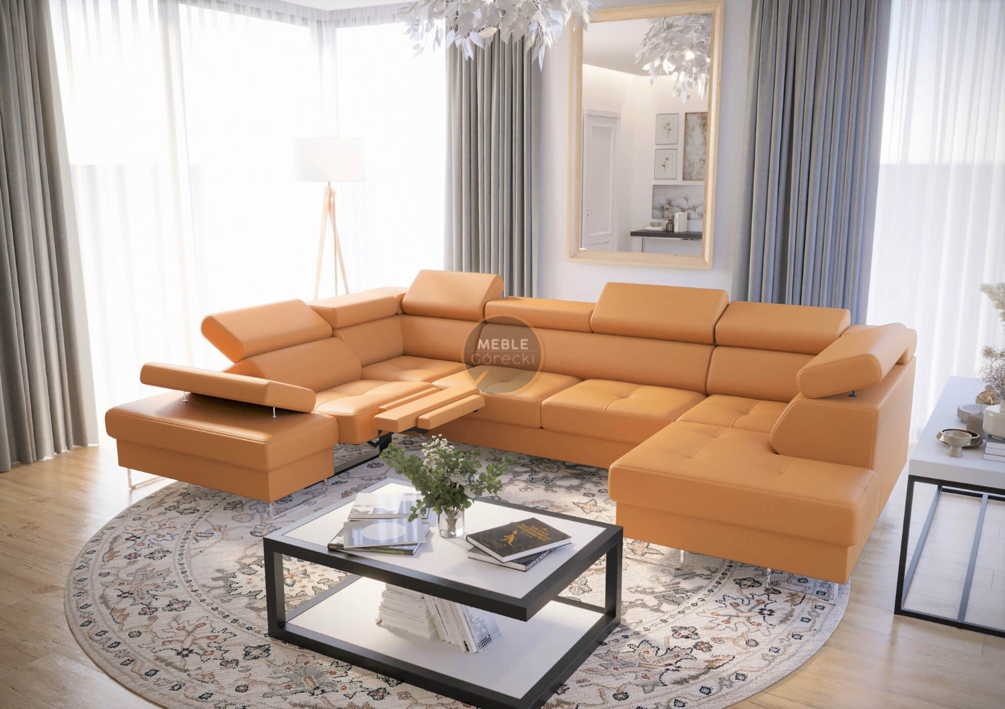 Rohová sedací souprava GALAXY MAX II , relax s funkcí spaní 215x350x170 přírodní kůže - levá, přírodní kůže - volitelná barva