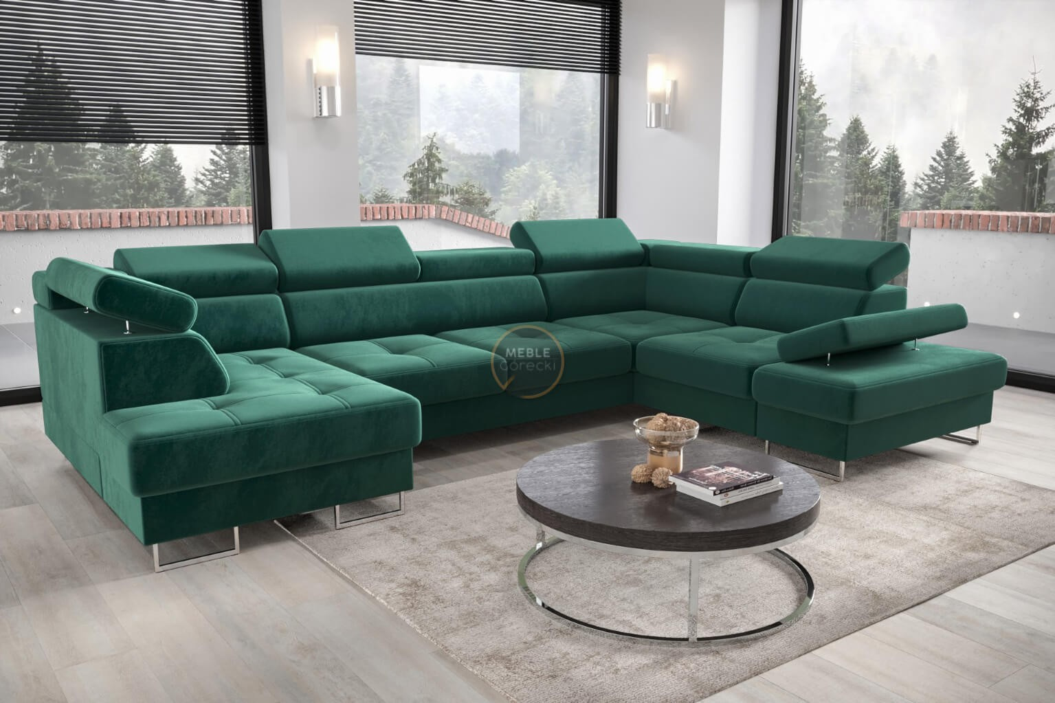 Rohová sedací souprava GALAXY MAX II s funkcí spaní 210x350x165 - zelená , pravá