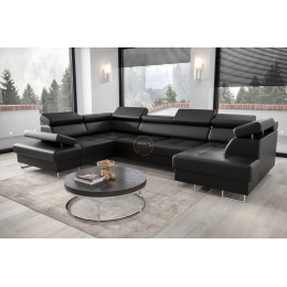 Rohová sedací souprava GALAXY MAX II s funkcí spaní 210x350x165 přírodní kůže - černá kůže, levá