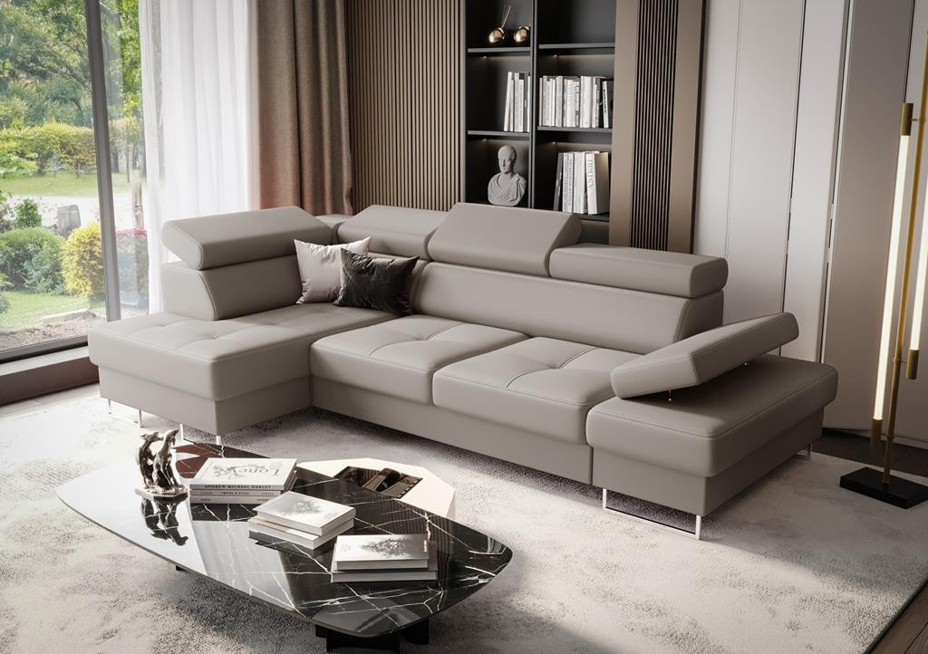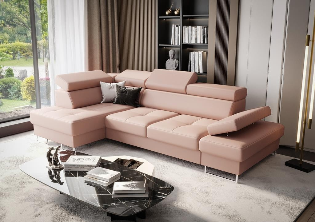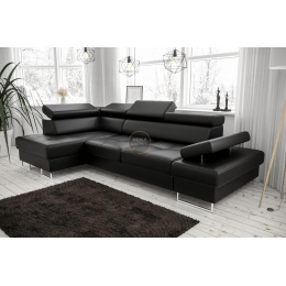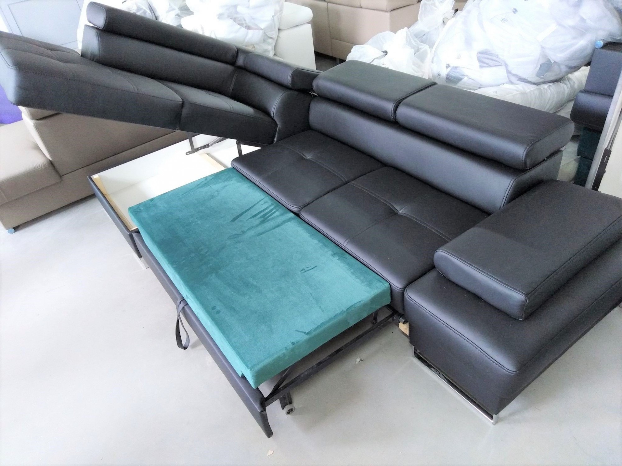 Rohová sedací souprava GALAXY MINI s funkcí spaní 170x280 přírodní kůže - černá kůže, levá