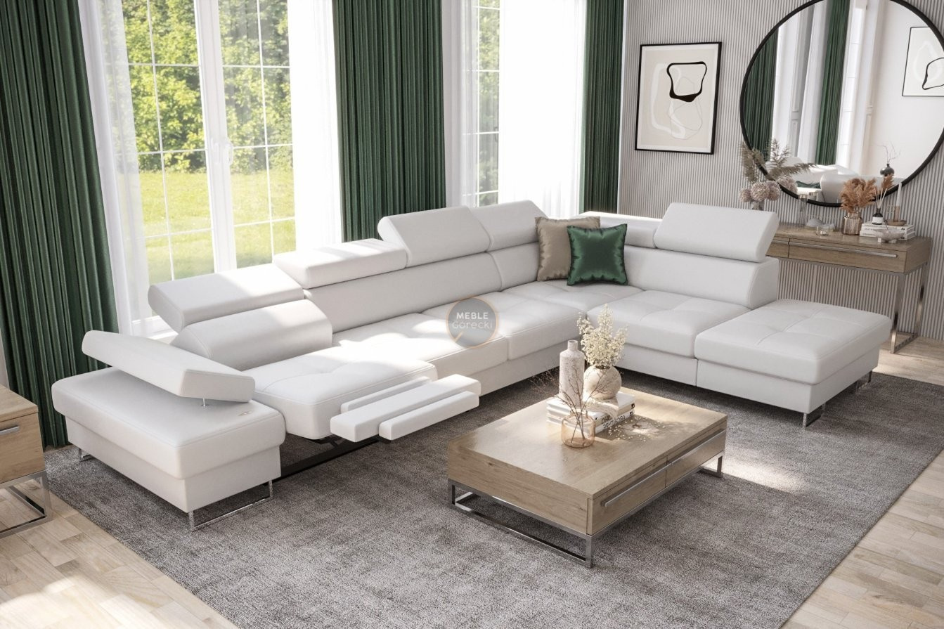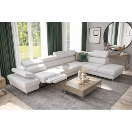 Rohová sedací souprava GALAXY , relax s funkcí spaní 225X350 cm - bílá eko kůže, pravá