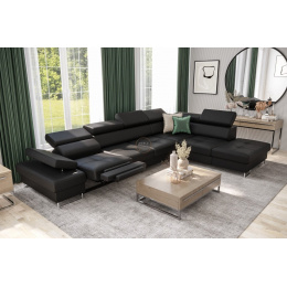 Rohová sedací souprava GALAXY , relax s funkcí spaní 225X350 cm - černá eko kůže, pravá