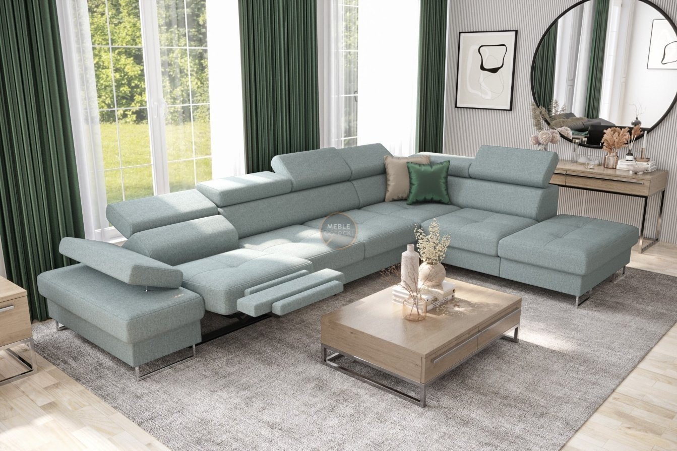 Rohová sedací souprava GALAXY , relax s funkcí spaní 225X350 cm - Odstíny mátové, pravá