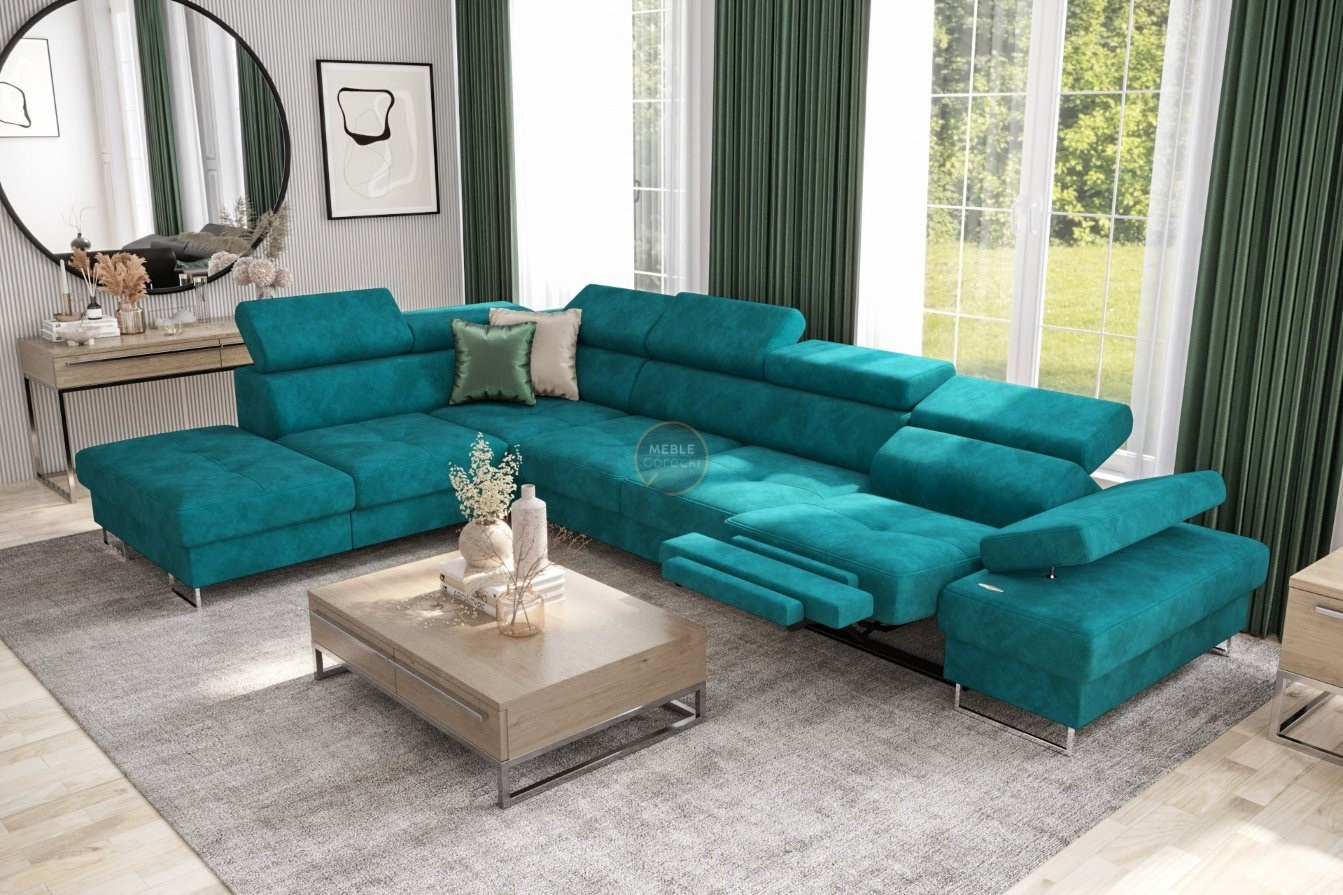 Rohová sedací souprava GALAXY , relax s funkcí spaní 225X350 cm - zelená , levá