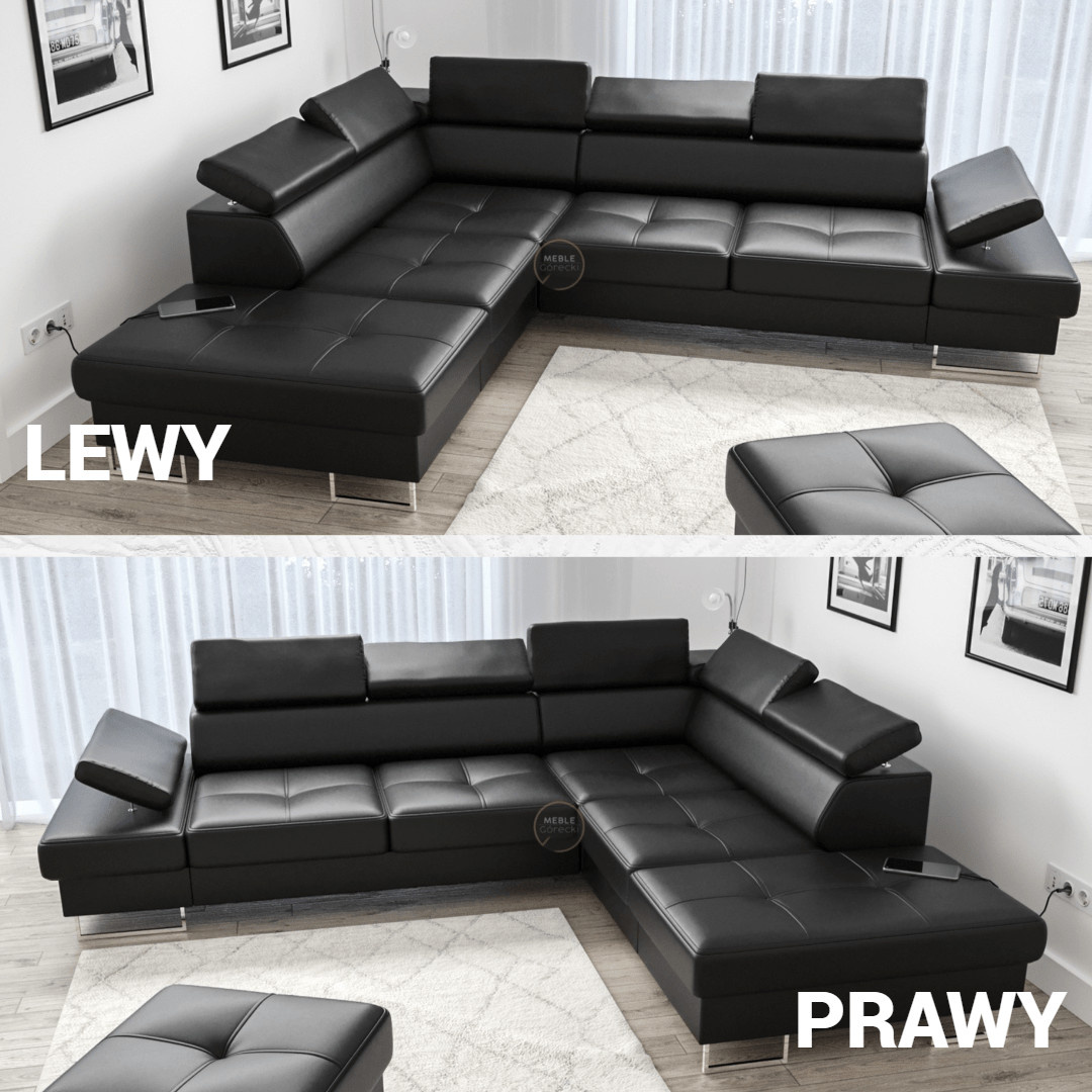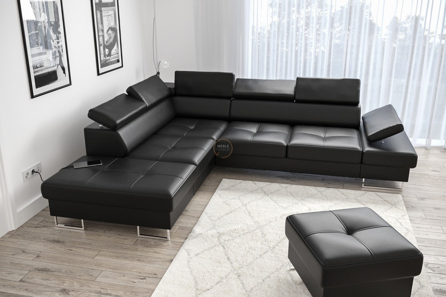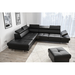 Rohová sedací souprava GALAXY s funkcí spaní 225x280 černá přírodní kůže LE MANS AKCE - Levá strana