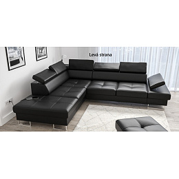 Rohová sedací souprava GALAXY s funkcí spaní 225x280 přírodní kůže - Levá strana, černá kůže