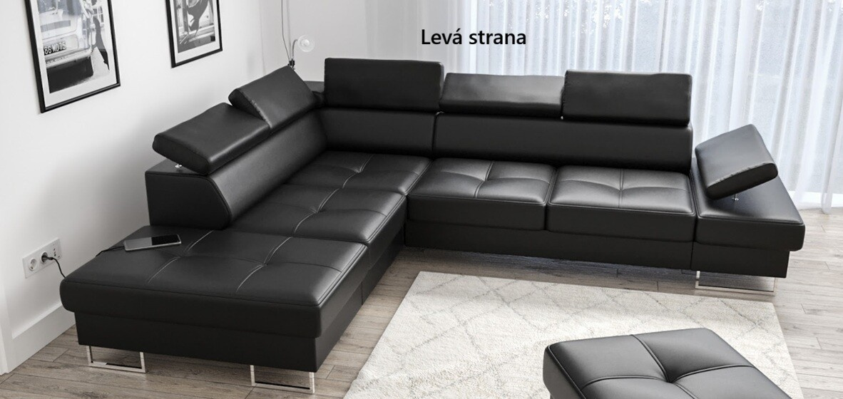 ROHOVÁ POHOVKA GALAXY S FUNKCÍ SPÁNKU 225X280 PŘÍRODNÍ KŮŽE. Rohová pohovka Galaxy je stylovou volbou, která zaujme svým jednoduchým a nadčasovým designem s nádechem modernity. Ceníte si pohodlí, ale nechcete obětovat moderní design? Rohová pohovka Galaxy kombinuje pohodlí s osobitým vzhledem a splňuje očekávání i těch nejnáročnějších zákazníků. VLASTNOSTI: Automatická funkce delfínového spaní - snadno promění pohovku v postel pro hosty. Přihrádka na ložní prádlo vyrobená výhradně z laminované desky - další úložný prostor. Dekorativní prošívání a prošívání na sedácích - esteticky zpracované s důrazem na nejmenší detail. Dvě možnosti nohou na výběr: kovové rámy ve stříbrné nebo černé barvě. Nastavitelné opěrky hlavy (pevná rohová opěrka hlavy) - umožňují nastavit nábytek do nejpohodlnější polohy. Nastavitelná loketní opěrka - navíc umožňuje nastavit nejpohodlnější polohu těla při odpočinku. VÝROBA: Všechny prvky produktu jsou prošity silným prošíváním, které dodává dekorativní detaily a zpevňuje spoje látek. Sedadla jsou vyrobena z vlnitých pružin a vysoce pružné pěny (kombinace nejkvalitnějších pěn T35 a HR), díky čemuž jsou středně měkká, ale zároveň velmi odolná. Rámy jsou vyrobeny ze dřeva a nábytkové desky, takže náš nábytek je robustní a cena jde vždy ruku v ruce s kvalitou.