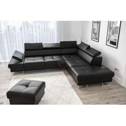 Rohová sedací souprava GALAXY s funkcí spaní 225x280 přírodní kůže - Pravá strana, černá kůže