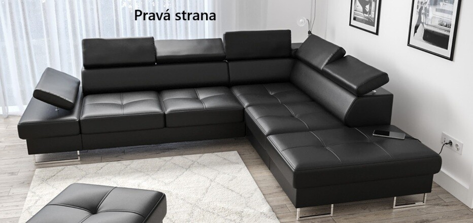 Rohová sedací souprava GALAXY s funkcí spaní 225x280 přírodní kůže - Pravá strana, Červená kůže