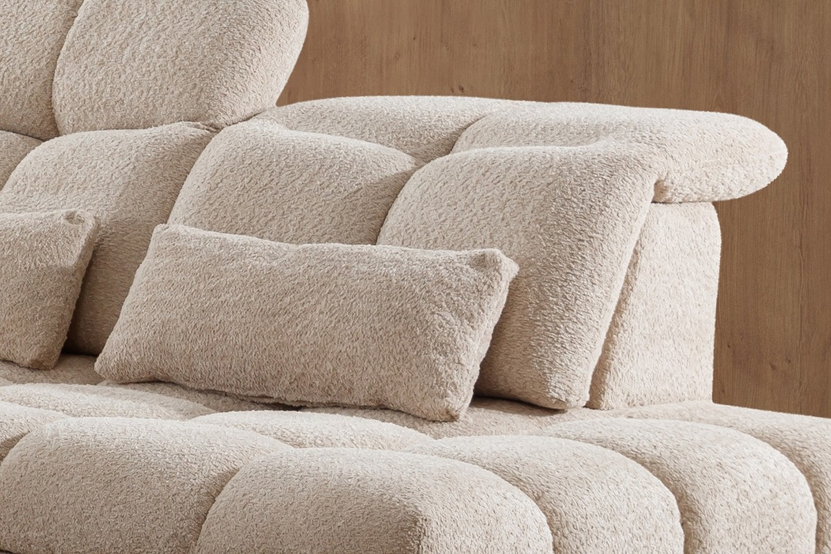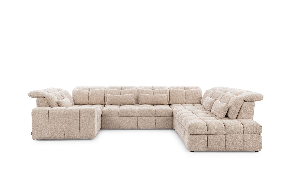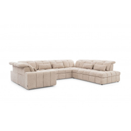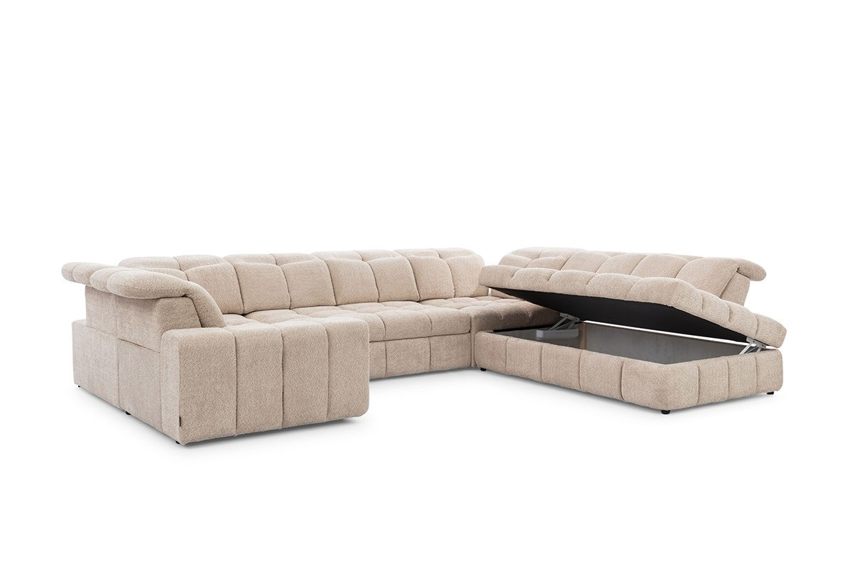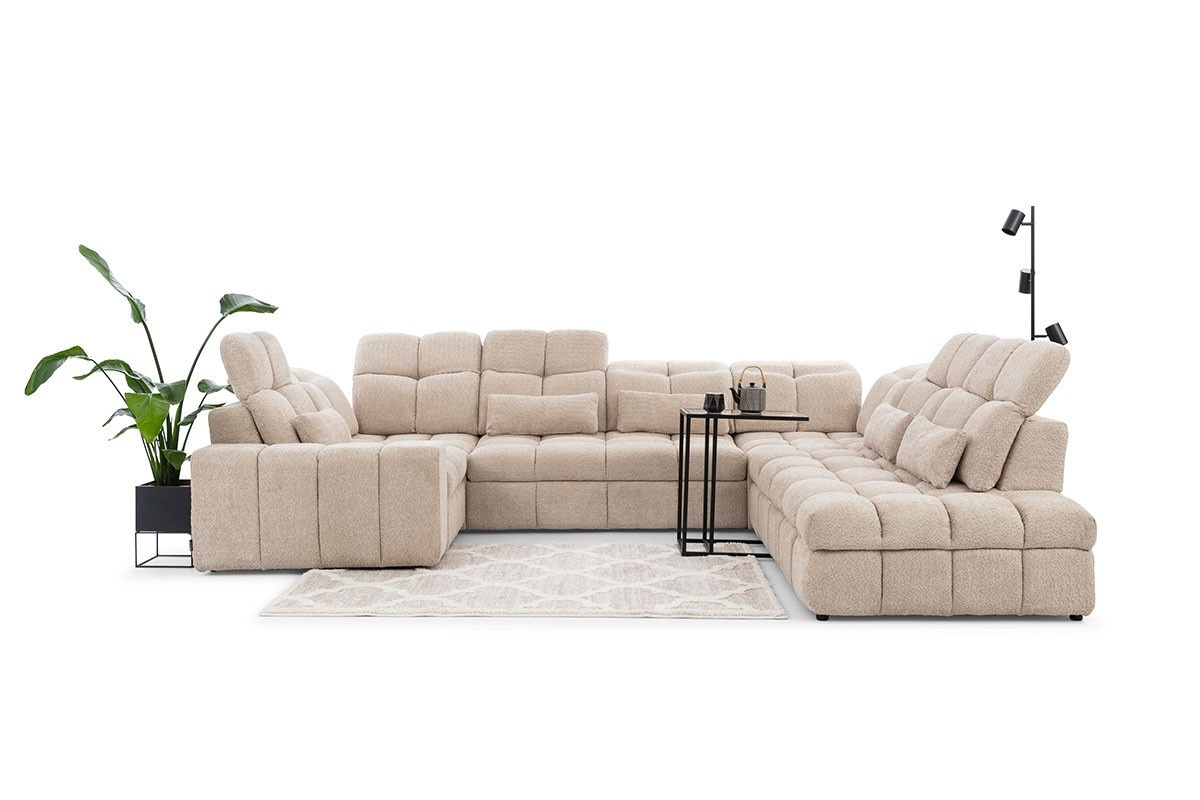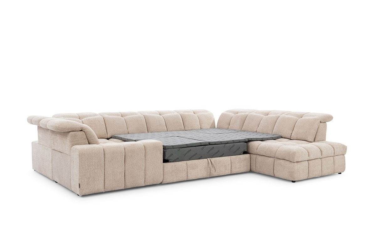 Rohová sedací souprava pravá strana z elektricky wysuwanym sedadlem i i funkcja spaní Magnelio U - béžový, šířka: 350, výška: 87/107, hloubka: 280/200, Spací plocha: , Montáž: . Narożnik Leonardo jest nowoczesną propozycją mebla wypoczynkowego, który rozkłada się do spania. Ponadto Narożnik Leonardo posiada miękkie siedzisko oraz regulowana głębokość siedziska.