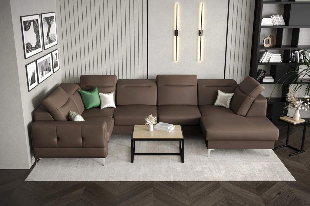 Rohová sedací souprava MALIBU MAX II 180x350x182 cm přírodní kůže - Hnědá kůže, Levá strana