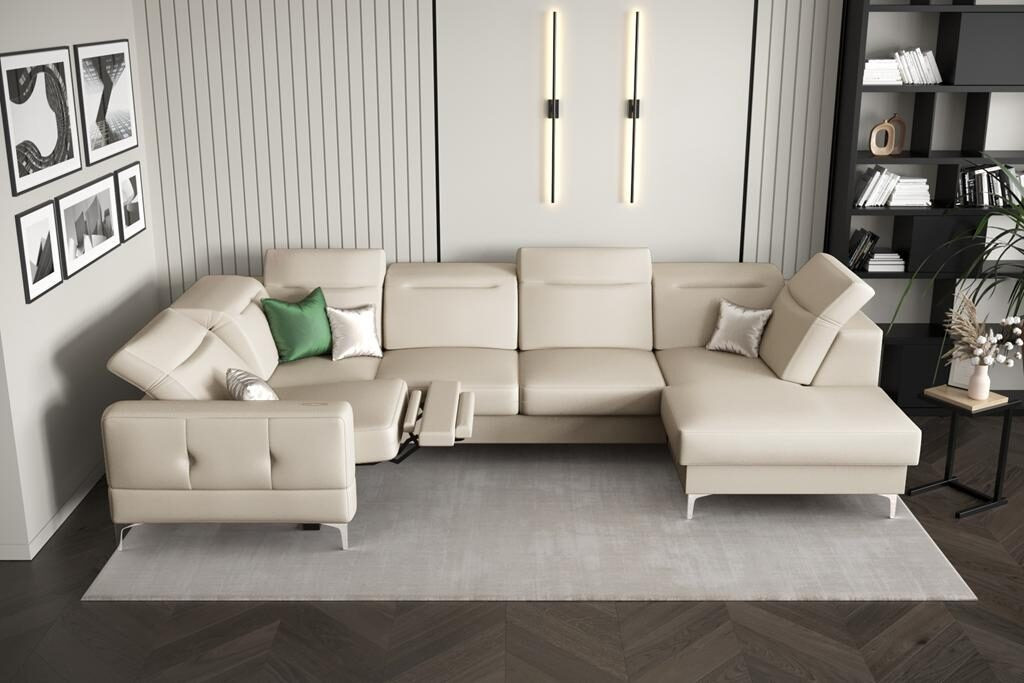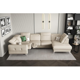Rohová sedací souprava MALIBU MAX II , relax 180x350x182 cm přírodní kůže - Kůže ecru, Levá strana