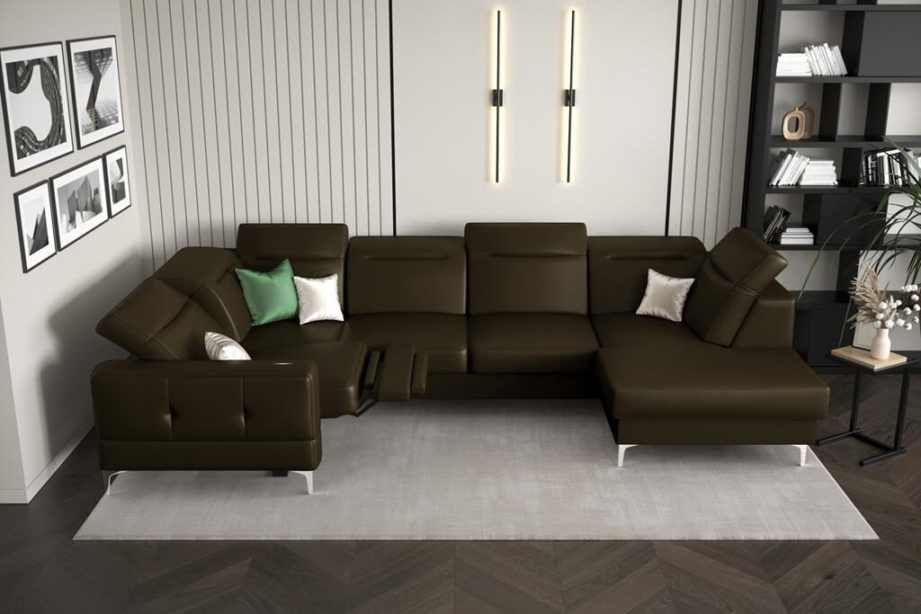 Rohová sedací souprava MALIBU MAX II , relax 180x350x182 cm přírodní kůže - Olivově hnědá, Levá strana
