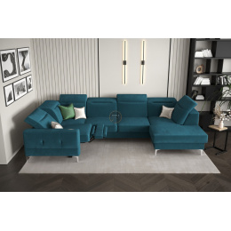 Rohová sedací souprava MALIBU MAX II s funkcí spaní a relaxací 180x350x182 cm - modrá, Levá strana