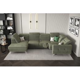 Rohová sedací souprava MALIBU MAX II s funkcí spaní a relaxací 180x350x182 cm - olivová, pravá strana