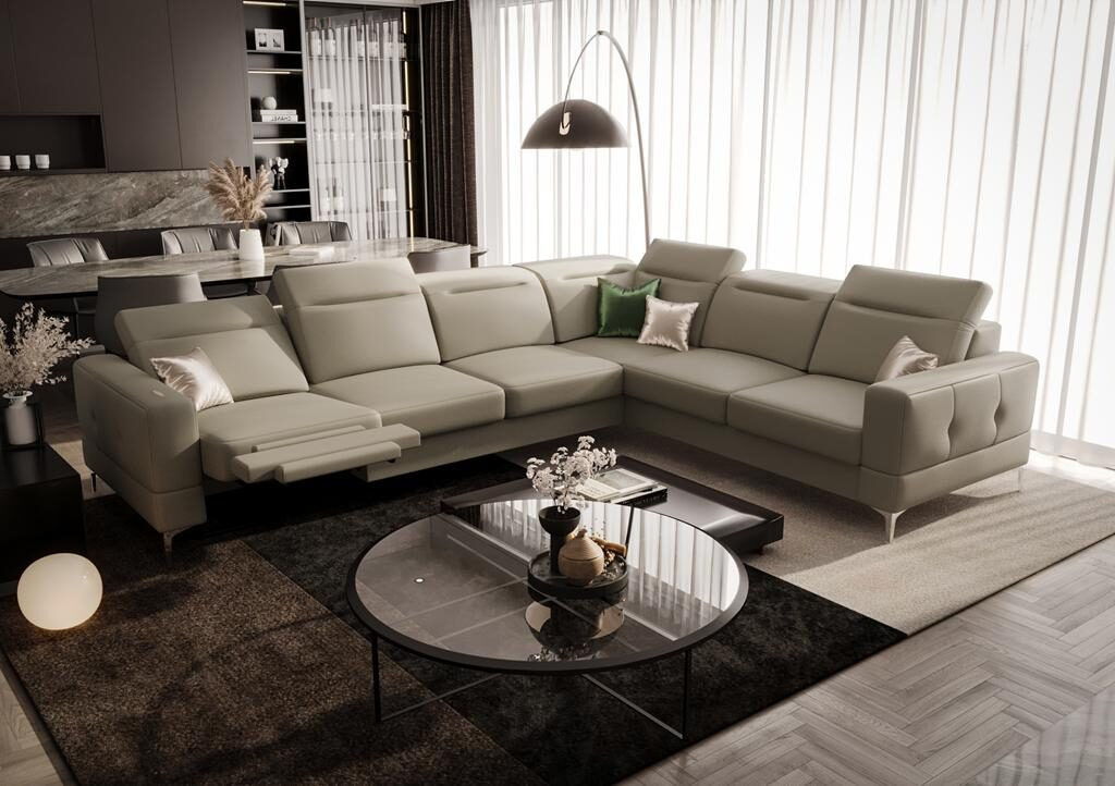 Rohová sedací souprava MALIBU MAX , relax 320x250 přírodní kůže - levá, Béžová kůže