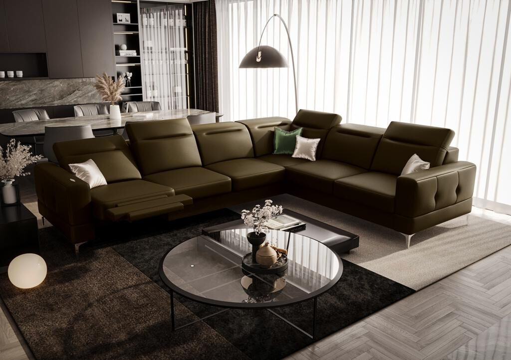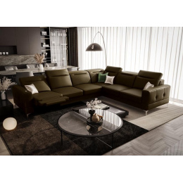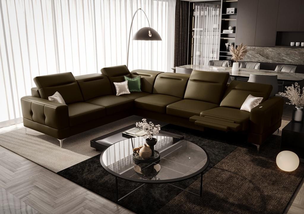 Rohová sedací souprava MALIBU MAX , relax 320x250 přírodní kůže - levá, Kůže olivově hnědá