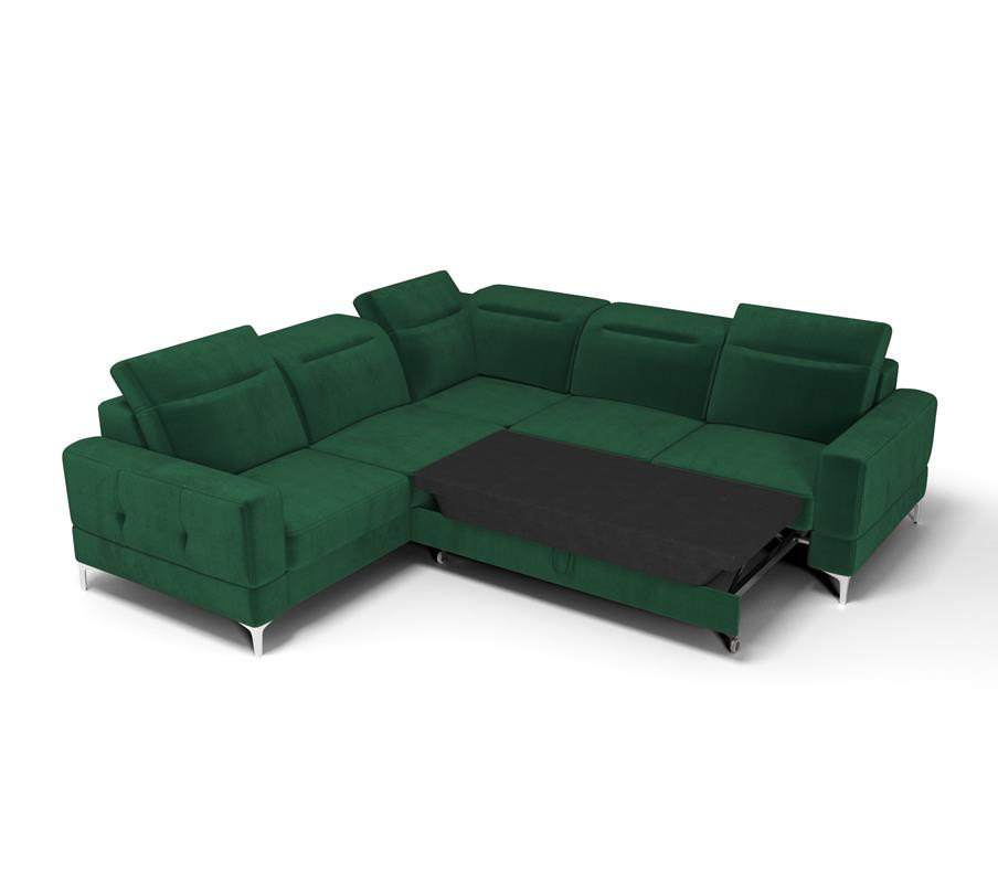 Rohová sedačka má nastavitelné, vícestupňové opěrky hlavy, chromované ozdobné nožky, sedáky s ozdobným prošíváním, které jsou vyrobeny na vlnitých pružinách a vysoce elastické pěně, což zajišťuje vysoký komfort používání a zabraňuje deformaci nejčastěji používaných ploch.