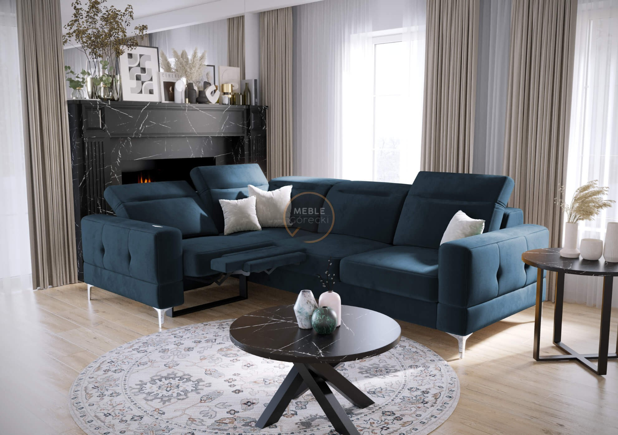 Rohová sedací souprava MALIBU , relax s funkcí spaní 185x250 cm - modrá , levá