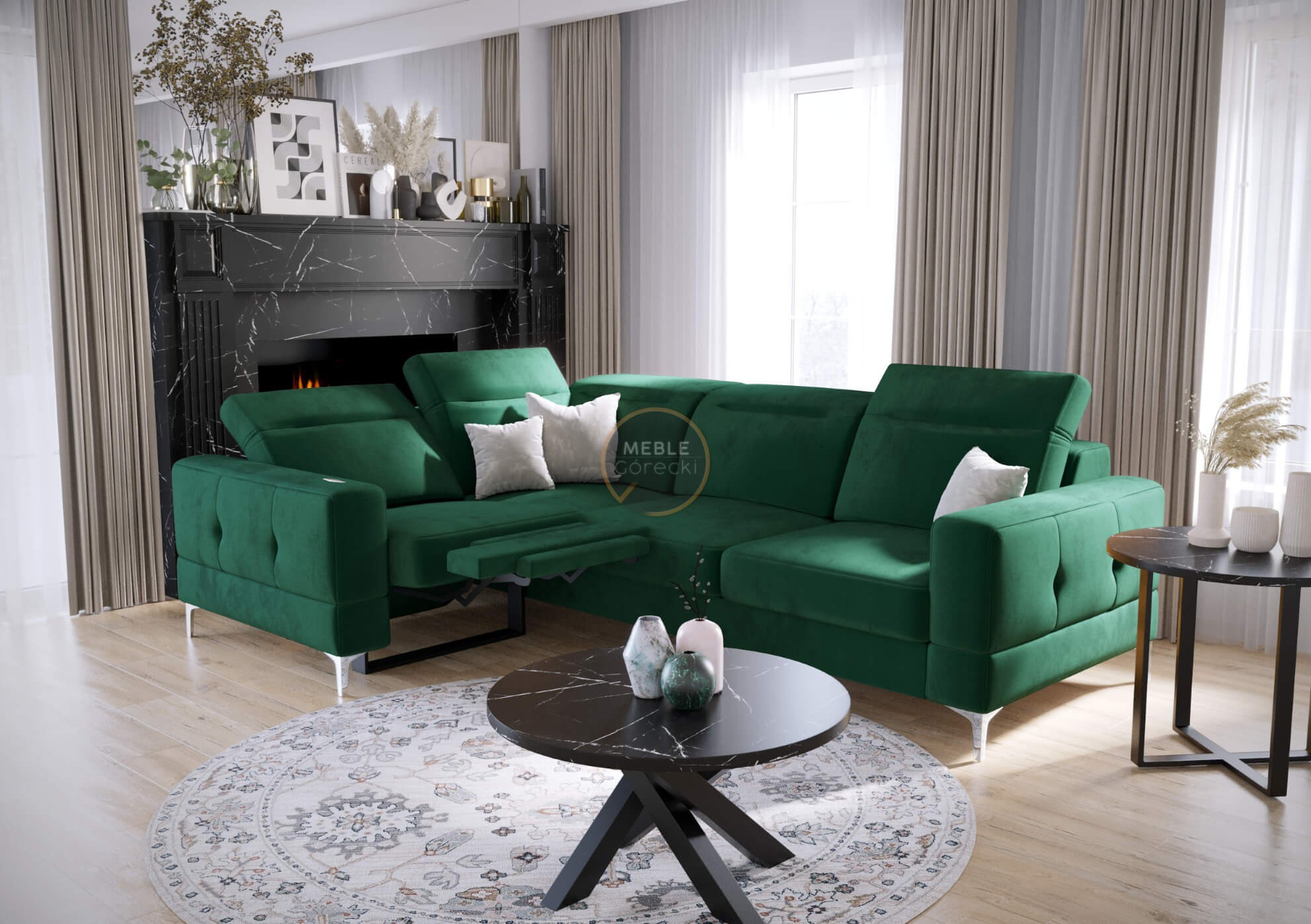 Rohová sedací souprava MALIBU , relax s funkcí spaní 185x250 cm - zelená , levá