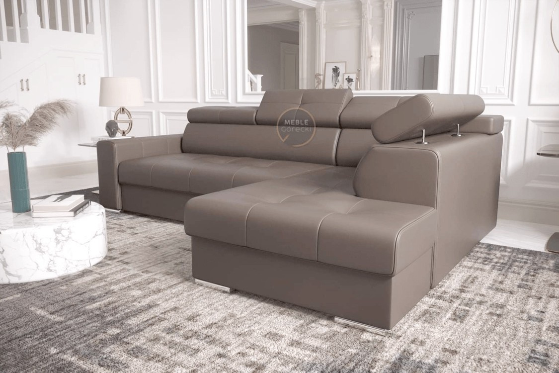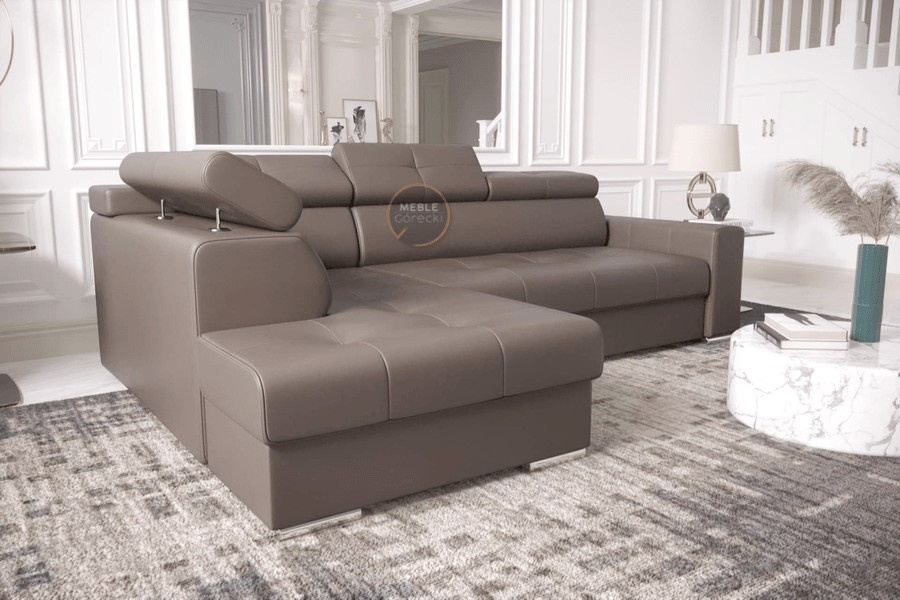 Rohová sedací souprava MARGO I 265×185 přírodní kůže - Levá strana, Hnědá kůže