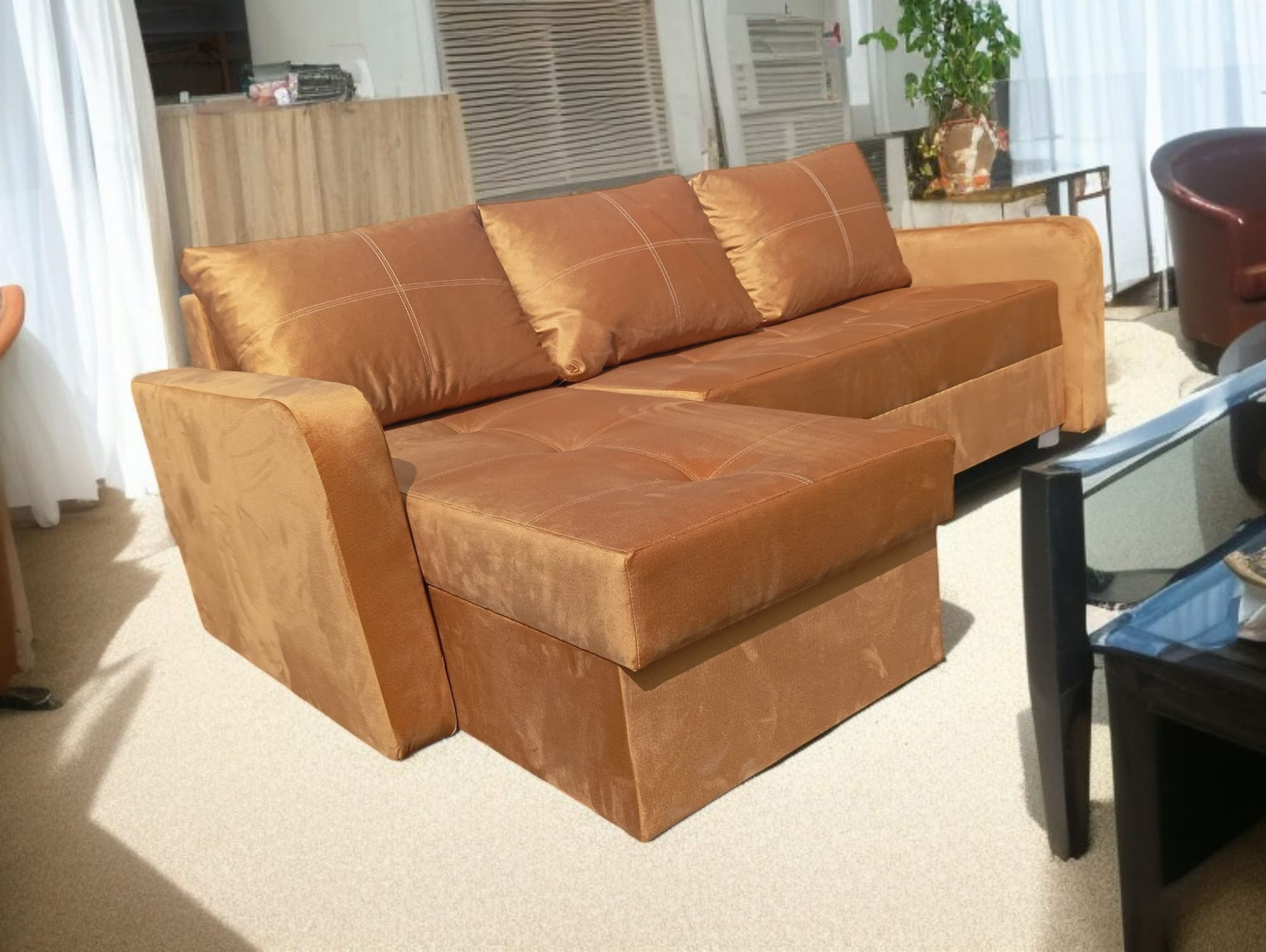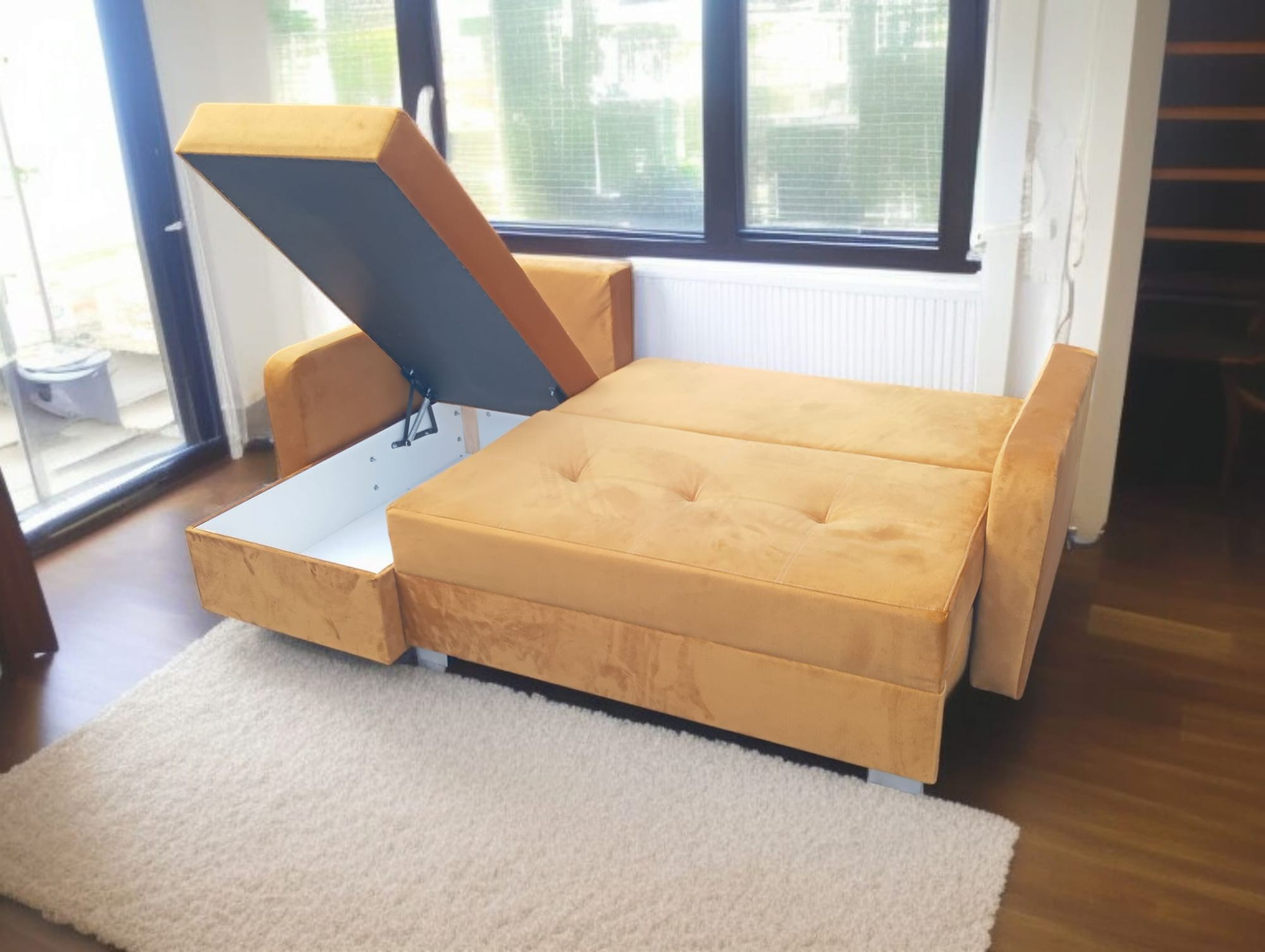 Rohová sedačka MEDIOLAN je moderní, stylový nábytek, který spojuje nadčasový design, pohodlí a praktická řešení. Ideálně se hodí do obývacího pokoje, denní místnosti nebo hostinského prostoru, nabízející pohodlný odpočinek pro celou rodinu. Sedák a opěradlo jsou vyrobeny z vysoce kvalitní pěny T30 a elastické pěny HR, což zajišťuje výjimečné pohodlí a trvanlivost používání. Solidní rám z dřevotřísky a dřeva zaručuje stabilitu a odolnost, a rohová sedačka je vybavena dvěma úložnými prostory na ložní prádlo a funkcí spaní, která během několika okamžiků promění nábytek v pohodlnou postel. Rozměry: šířka: 226 cm hloubka: 86/144 cm výška sedáku: 42 cm celková výška: 74 cm plocha na spaní: 137 × 200 cm (tolerance rozměrů ±3 cm) Rohová sedačka MEDIOLAN je kombinací komfortu, elegance a funkčnosti, která se dokonale hodí do každého moderního interiéru.