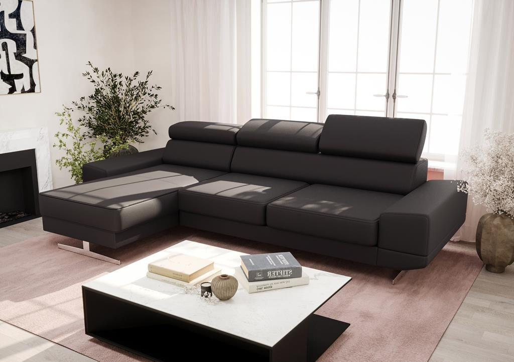 Rohová sedací souprava MILANO MINI přírodní kůže - černá kůže, levá