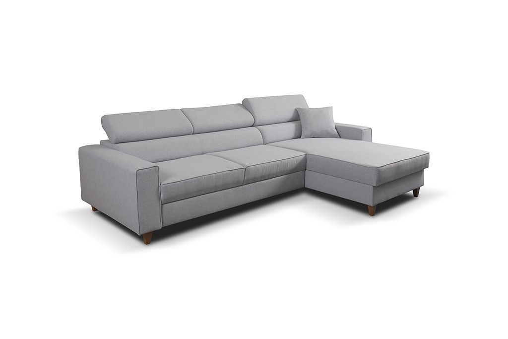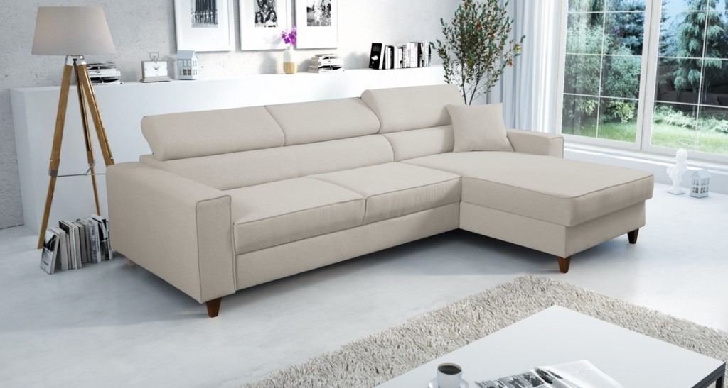 Rohová sedačka má funkci spaní a úložný prostor na lůžkoviny. Nohy v rohu byly použity dřevěné. Rohová sedačka má 3 nastavitelné opěrky hlavy a ozdobné prošívání. Byl vyroben na vlnitých pružinách + vysoce elastická pěna typ T30. Lze objednat libovolnou stranu rohové sedačky. Stranu rohové sedačky vybíráme při pohledu zepředu na fotografii. ROZMĚRY: šířka: 262 cm výška: 87 cm hloubka: 175 cm plocha na spaní: 125 cm x 220 cm Všechny rozměry jsou uváděny s tolerancí +/- 3 cm.