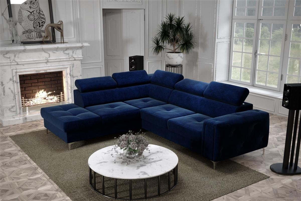 Rohová sedací souprava ORION II s funkcí spaní 225x255 cm - modrá, levá