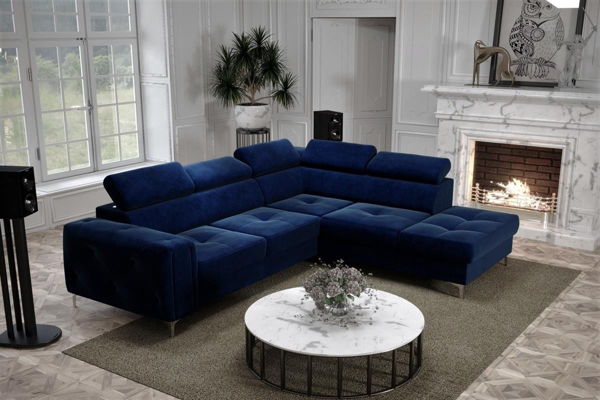 Rohová sedací souprava ORION II s funkcí spaní 225x255 cm - modrá, pravá