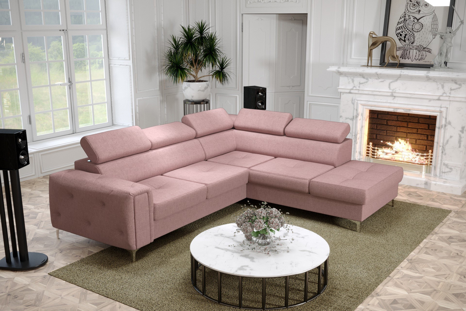 Rohová sedací souprava ORION II s funkcí spaní 225x255 cm - růžová, pravá