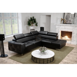 Rohová sedací souprava ORION II s funkcí spaní 225x255 cm přírodní kůže - černá kůže, Pravá strana