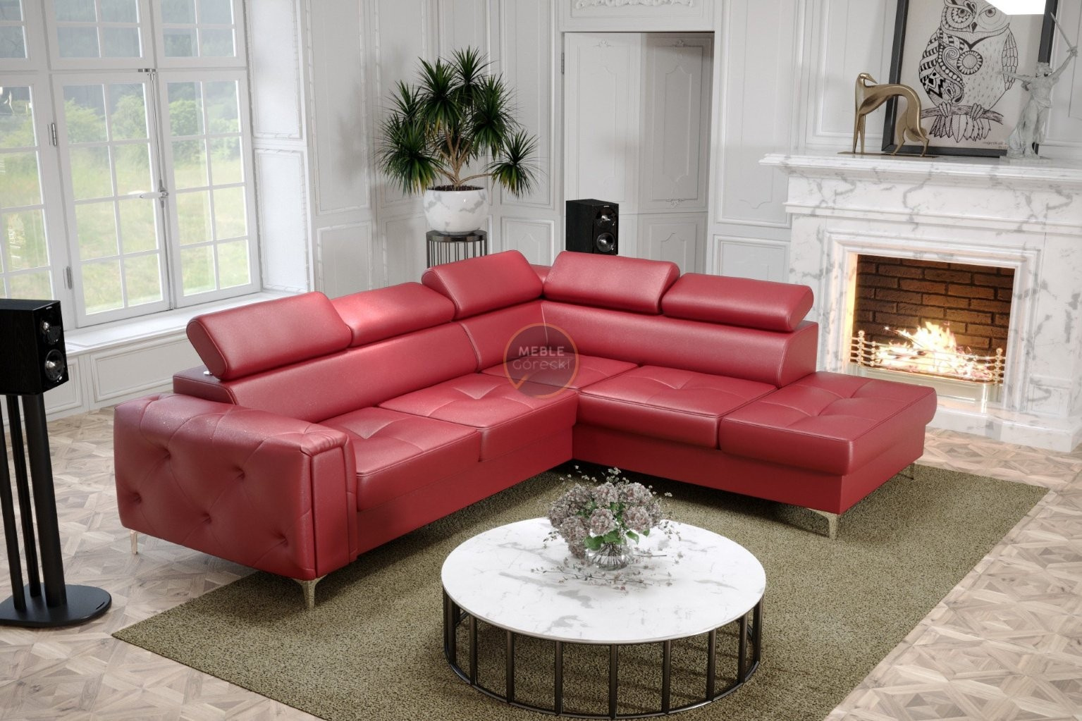 Rohová sedací souprava ORION II s funkcí spaní 225x255 cm přírodní kůže - červená kůže, Pravá strana