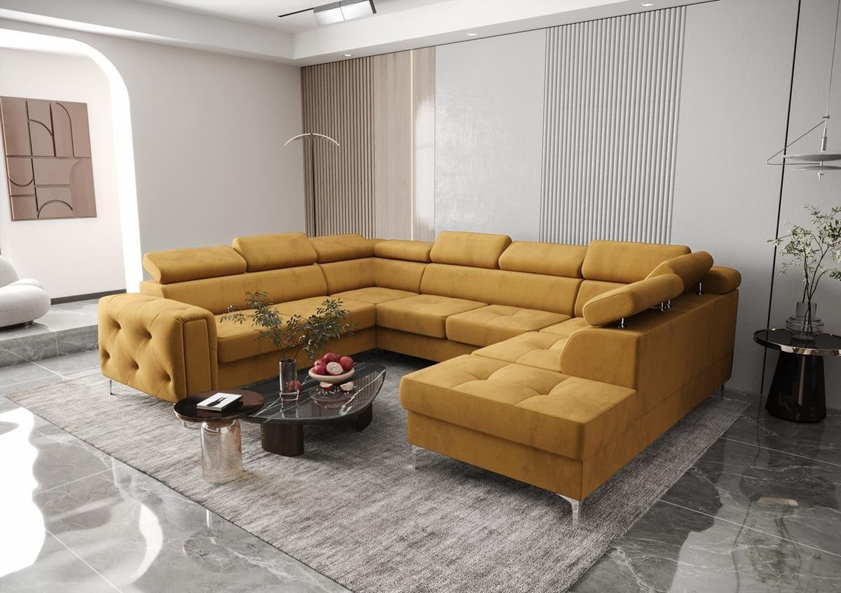 Kolekce čalouněného nábytku Orion je něco, co nikde jinde nenajdete! Charakteristickým prvkem jsou krásně zdobené, prošívané boky ve stylu glamour. Kromě estetických prvků stojí za to věnovat pozornost dokončení v podobě nastavitelných opěrek hlavy, které usnadní přizpůsobení výšky opěradla tak, aby byla pro vás ideální. Vysoké 13 cm kovové nohy podtrhují celek a dodávají konstrukci lehkost.