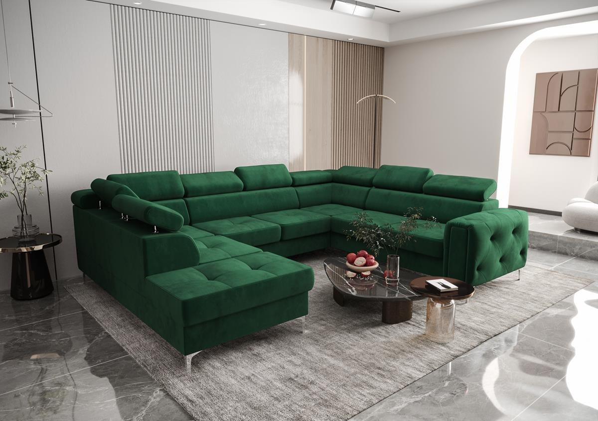 Rohová sedací souprava ORION MAX I s funkcí spaní 225X350X255 cm - zelená , pravá