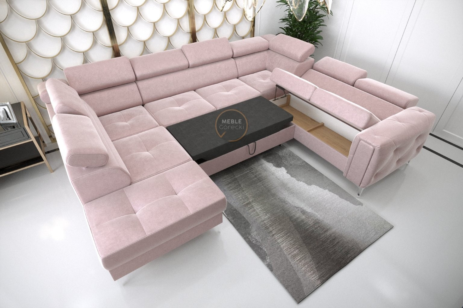 Kolekce čalouněného nábytku Orion je něco, co nikde jinde nenajdete! Charakteristickým prvkem jsou krásně zdobené, prošívané boky ve stylu glamour. Kromě estetických prvků stojí za to věnovat pozornost dokončení v podobě nastavitelných opěrek hlavy, které usnadní přizpůsobení výšky opěradla tak, aby byla pro vás ideální. Vysoké 13 cm kovové nohy podtrhují celek a dodávají konstrukci lehkost.
