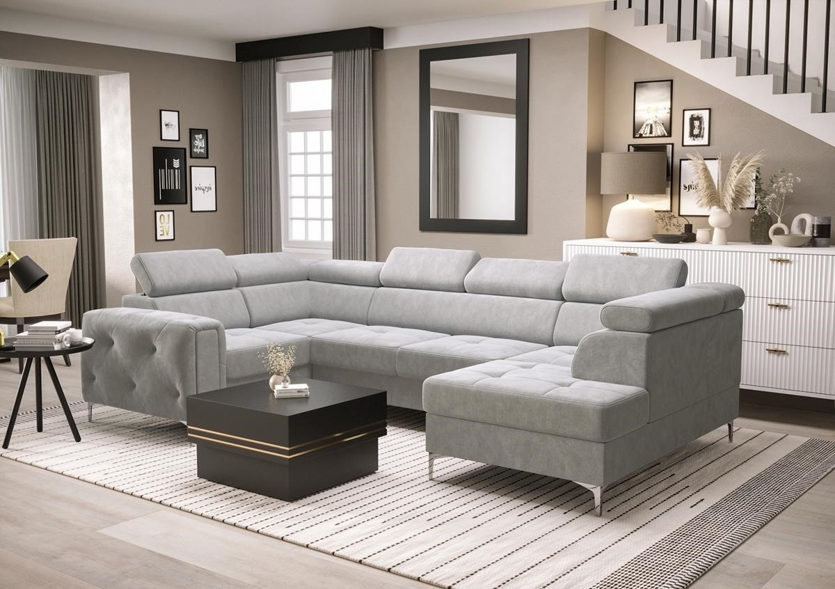 Kolekce čalouněného nábytku Orion je něco, co nikde jinde nenajdete! Charakteristickým prvkem jsou krásně zdobené, prošívané boky ve stylu glamour. Kromě estetických prvků stojí za to věnovat pozornost dokončení v podobě nastavitelných opěrek hlavy, které usnadní přizpůsobení výšky opěradla tak, aby byla pro vás ideální. Vysoké 13 cm kovové nohy podtrhují celek a dodávají konstrukci lehkost.