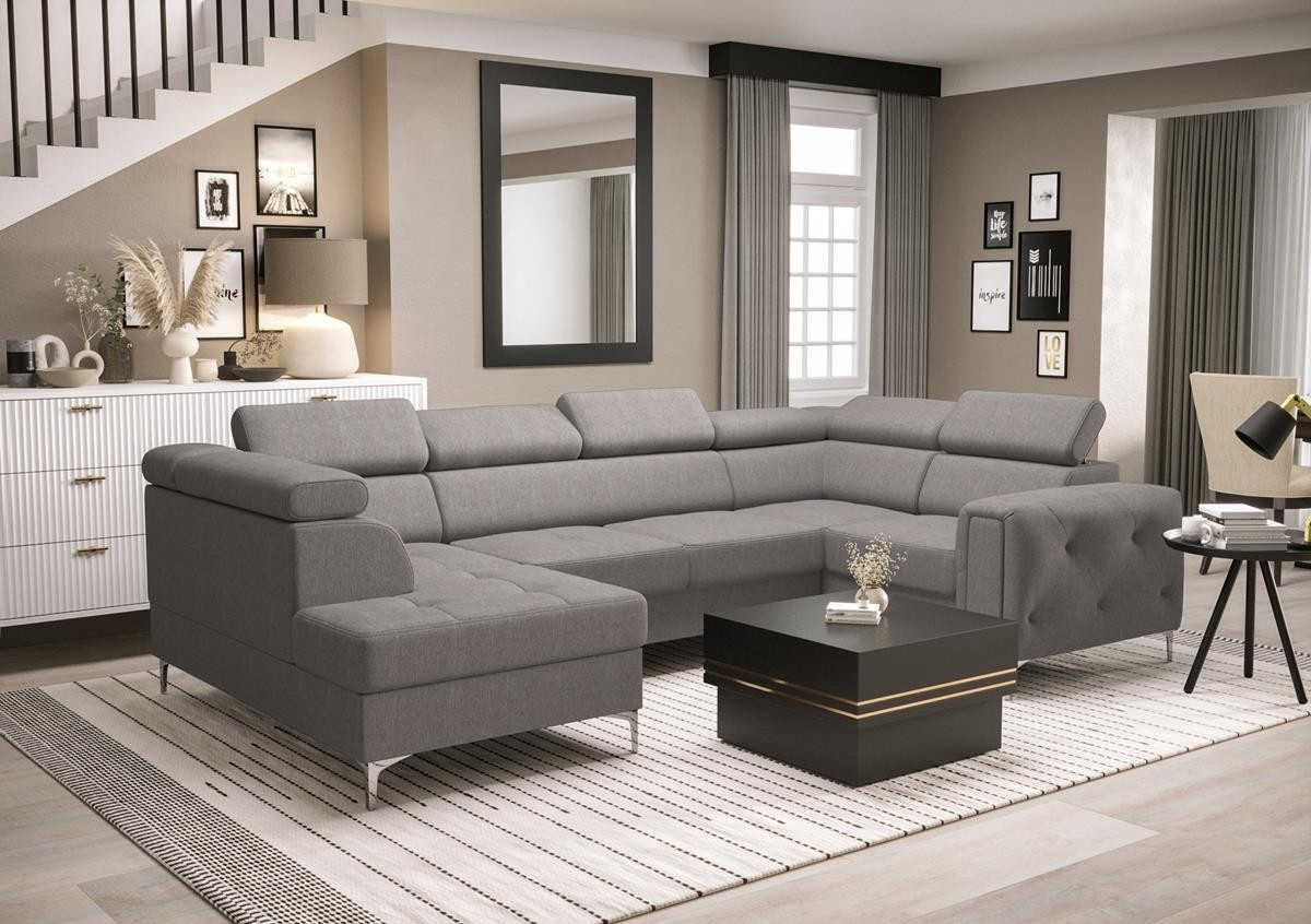 Rohová sedací souprava ORION MAX II s funkcí spaní 165x350x185 cm - šedá , pravá