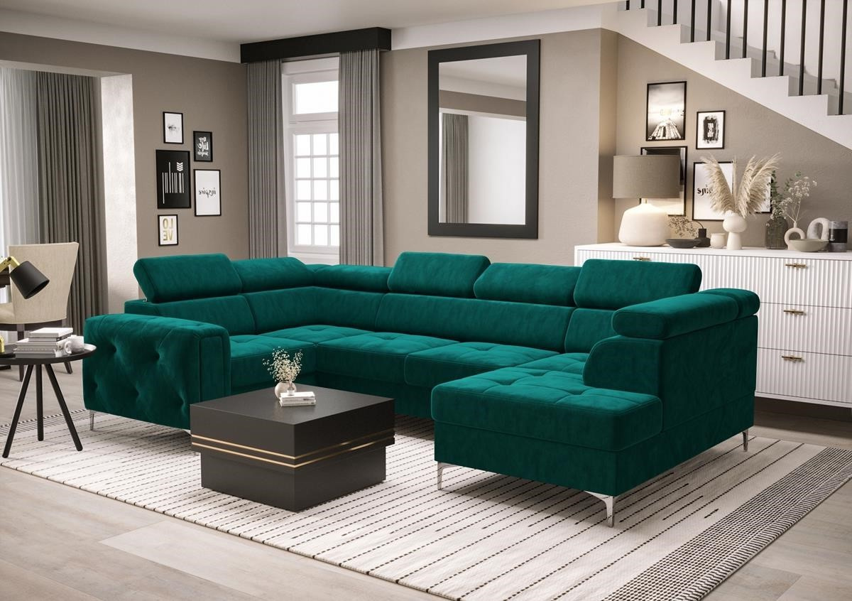 Kolekce čalouněného nábytku Orion je něco, co nikde jinde nenajdete! Charakteristickým prvkem jsou krásně zdobené, prošívané boky ve stylu glamour. Kromě estetických prvků stojí za to věnovat pozornost dokončení v podobě nastavitelných opěrek hlavy, které usnadní přizpůsobení výšky opěradla tak, aby byla pro vás ideální. Vysoké 13 cm kovové nohy podtrhují celek a dodávají konstrukci lehkost.
