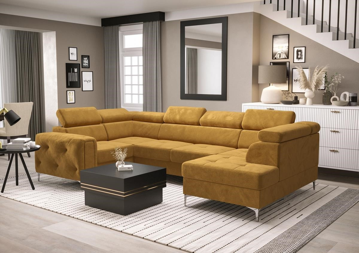 Rohová sedací souprava ORION MAX II s funkcí spaní 165x350x185 cm - žlutá, levá